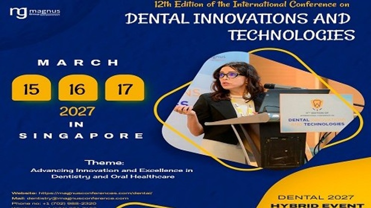 The 12th Edition of the International Conference on Dental Innovations and Technologies (Dental 2027) will be held from March 15–17, 2027, as a premier global platform dedicated to advancing modern dentistry. Organized under the theme “Advancing Innovation and Excellence in Dentistry and Oral Healthcare,” the conference highlights the integration of advanced technologies, sustainable practices, and patient-centered approaches in oral healthcare.